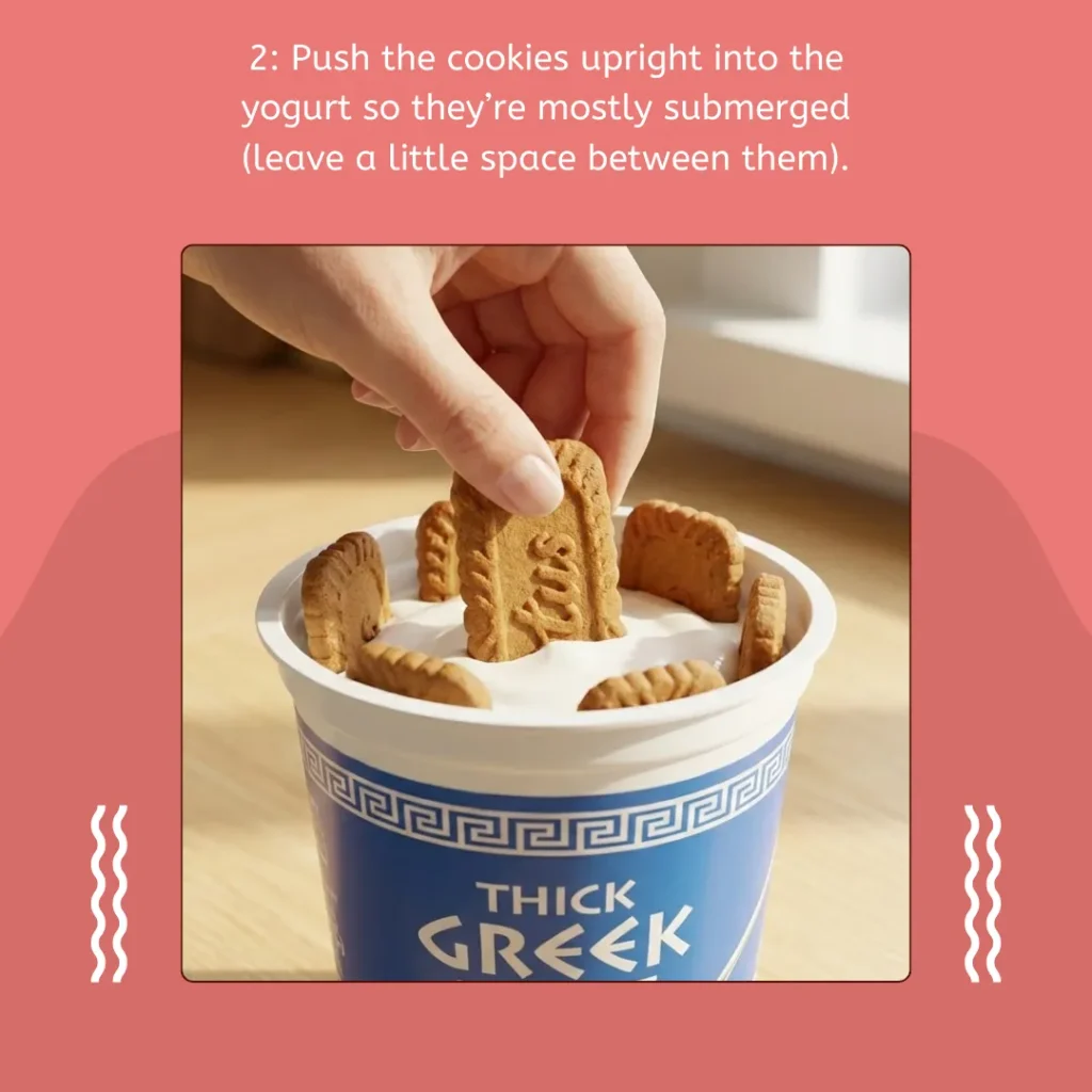This trend started in Japan and went viral because the cookies absorb moisture from the yogurt, transforming the mixture into a thicker, cheesecake style texture after a few hours in the fridge. It’s often called “Japanese yogurt cheesecake,” but it’s not the fluffy soufflé style cheesecake just a viral hack with a similar vibe.
